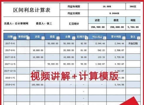 财务利息计算表企业借款利息计算个人借款利息贷款利息电子表格 软件截图: